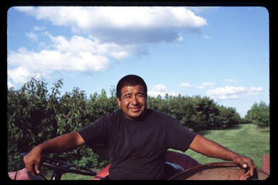 Peach picking. Summertime, Ontario, Canada.