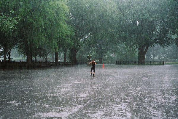 The only person enjoying the rain. Central Park, New York City, USA.