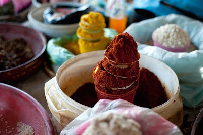 One of the only other places I visited in Zambia was Livingstone, the town closest to Victoria Falls on the Zambian side. It's pretty much a tourist town and the really isn't a whole lot to do there. There are museums and some buildings to visit and that's about it. The main road that passes through town is paved and continues to Lusaka and can bring you to the road to the airport also. I did however get to visit one of the markets there. I'm not sure how many markets there are in Livingstone (I saw this one and drove past a smaller market, well more like a road side market I suppose) but this seemed to be the main market. They sold pretty much everything. Out in front there were people selling bedding, electronics, and alcohol among many other items. Further inside there were clothes, foods, hairdressers, and small restaurants. Pretty much the main structure of the market was a concrete building that was portioned into individual stall spaces. The stalls areas were close together and the walkways in between were quite cramped. Once you add in hanging clothes, signs, and some pieces of cloth or metal to stop the sun and rain, the results were some very dark areas of the market. A shame really as I wanted a bit more light to take pictures but oh well. And of course like any good market the ground was a mix of dirt, crumbling conrete, and castoffs from various stalls. I did manage to take a few pictures. I also gave out a few more instant photos. The news that you're giving out free photos spreads surprisingly fast and by the time I had take four or five there was a smallish crowd (probably more like eight people, but eight people in a small alleyway!) asking if I could take their picture. I had run out of film at that point though so I couldn't take anymore. It's a good thing they accepted that I had run out as I pretty much had no where to go if I needed to make a quick getaway. They were all pretty friendly though. One man asked to take a photo of his small son with himself which I did. I wanted another picture of them but before I had a chance to take it with my digital camera they disappeared around a corner. This first picture is of a tailor. I took a few pictures before this one and he looked like the saddest most serious guy ever. No smile at all haha. Once I took an instant photo and gave it to him though, the smile came out. I also had a driver from the hotel with me and whilst most people spoke English they speak their own language much more comfortably and he was able to quickly get my message of picture taking across to them.
