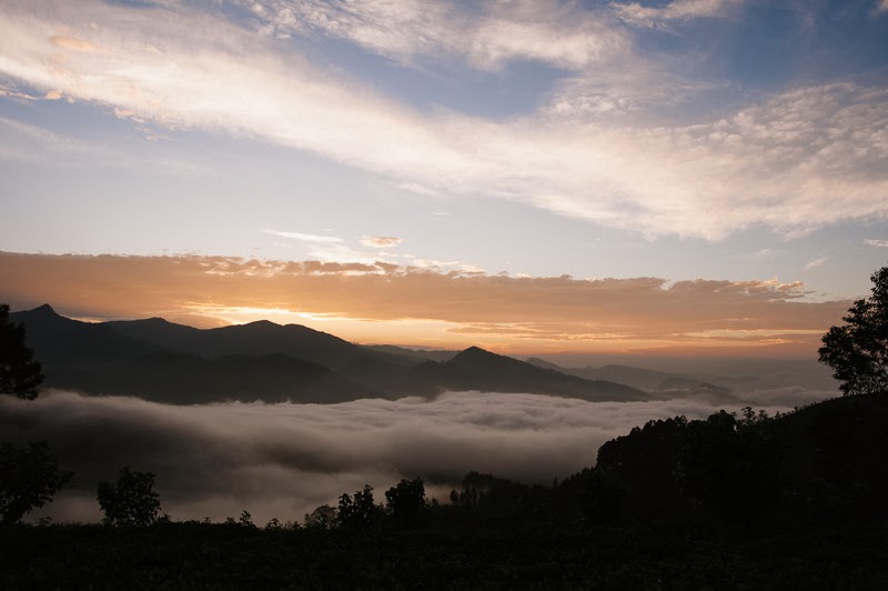 slowly filling up a valley as the sun rose from behind mountains. Elephants