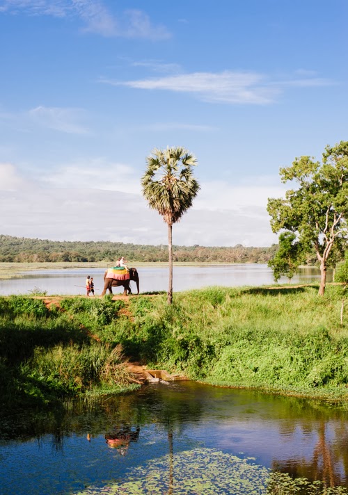 making their way to and from Angkor Wat. Whole families whiz by on motorbikes,
